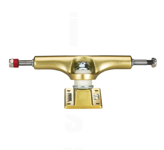 Complete set of 2 Ace AF1 size 33 gold skateboard trucks. Ace AF1 features game-changing performance without deviating from the original Ace geometry. The AF1 is carefully manufactured using a proprietary casting process. Years in development, the ACE AF1 has a 70% increase in the aluminum's structural integrity, making it the strongest cast truck on the market. Includes 2 Trucks. Size 33 features a 8.0-inch axle width, designed to fit skateboard decks between approximately 7.75 and 8.25 inches wide
